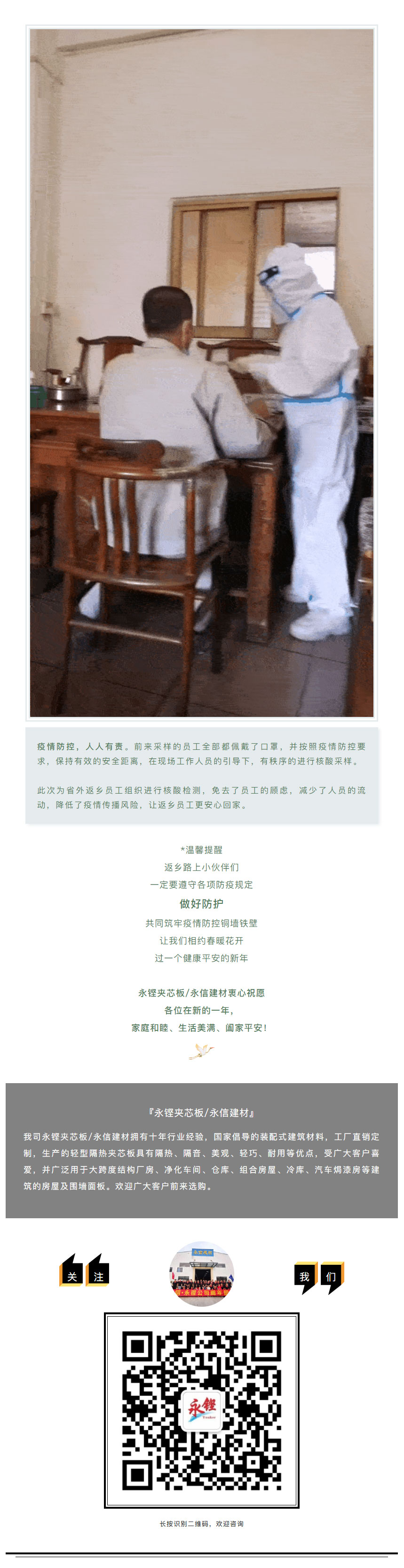 助力返乡 | 永铿夹芯板组织企业员工核酸检测