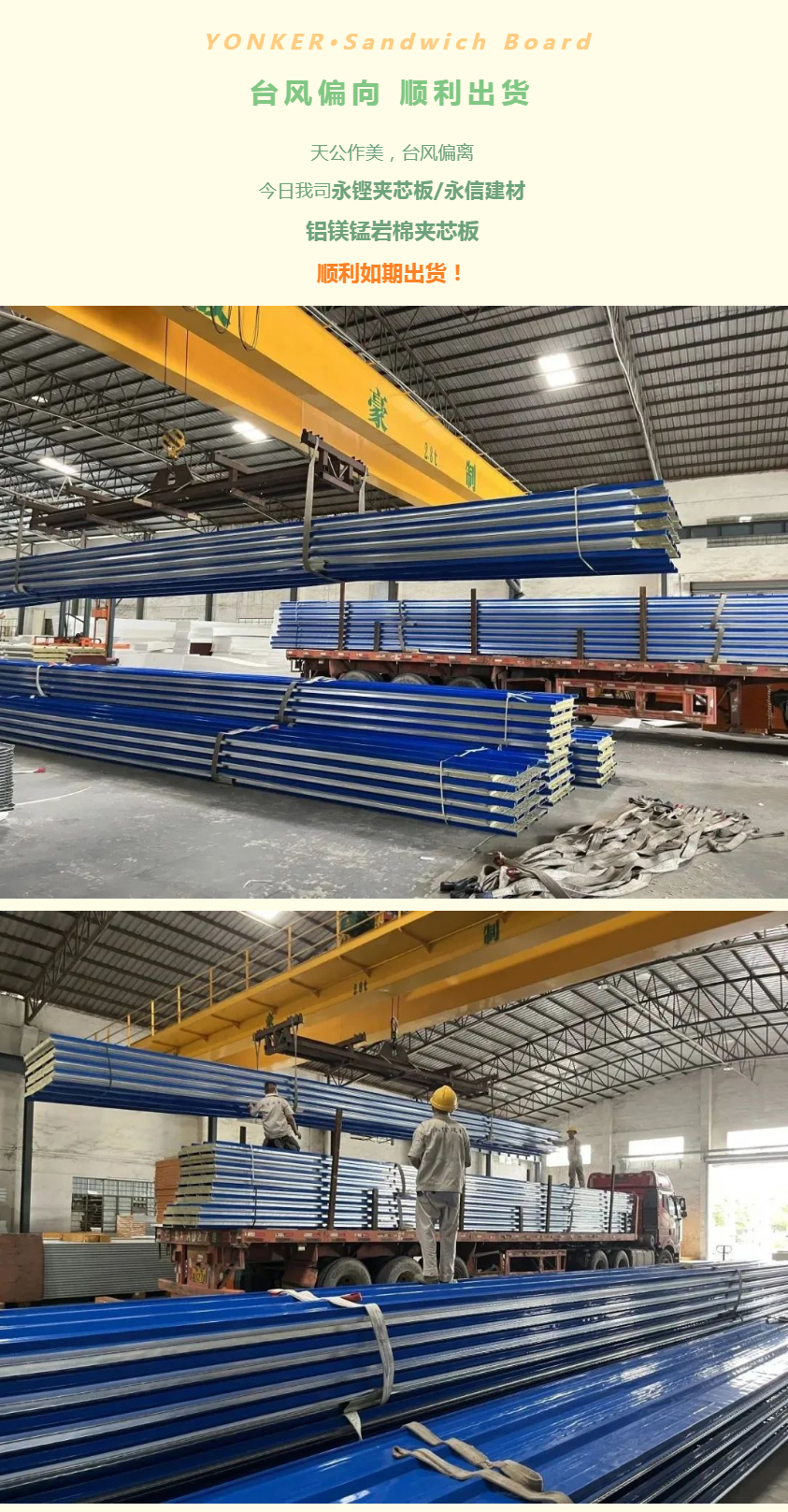 永铿夹芯板 | 台风偏离,天公作美,铝镁锰岩棉夹芯板顺利出货!