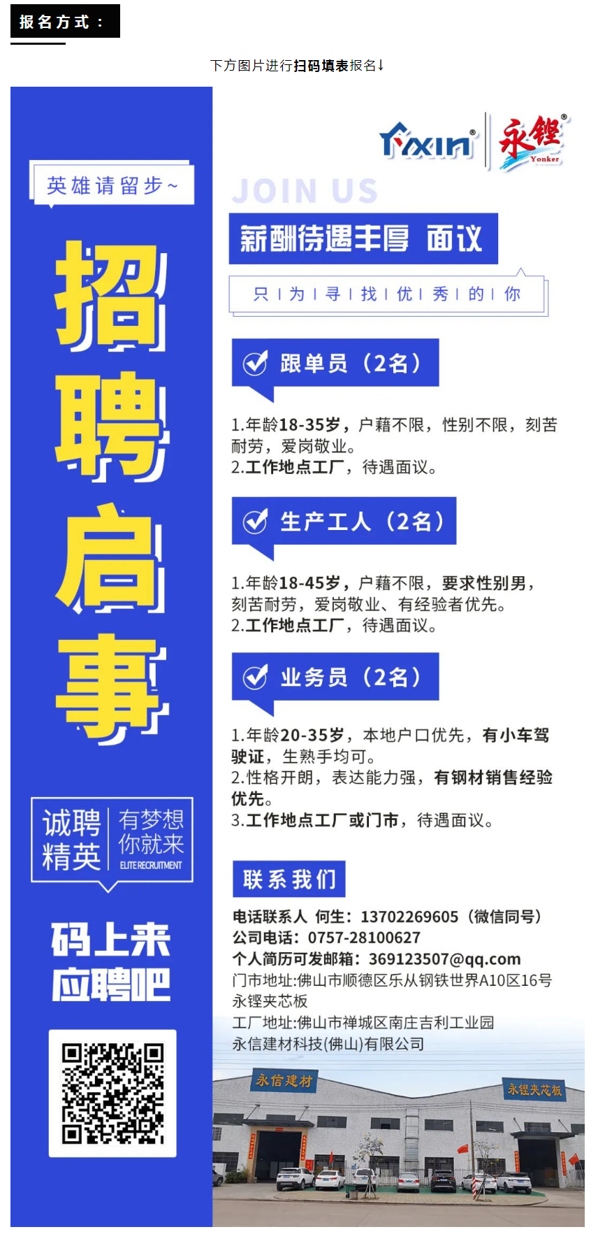 【招贤纳士】| 永铿夹芯板/永信建材,“职”等您来!