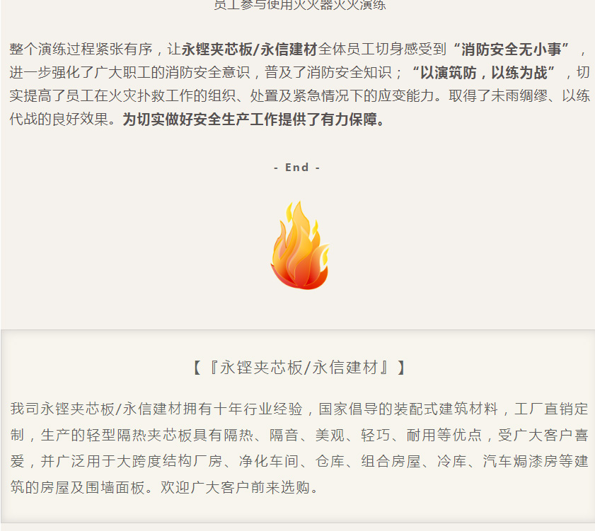 小暑丨永铿夹芯板开展消防应急演练