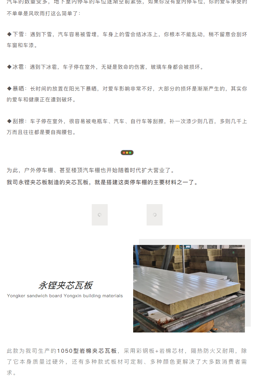 永铿夹芯板丨全方位护航停车楼顶汽车棚