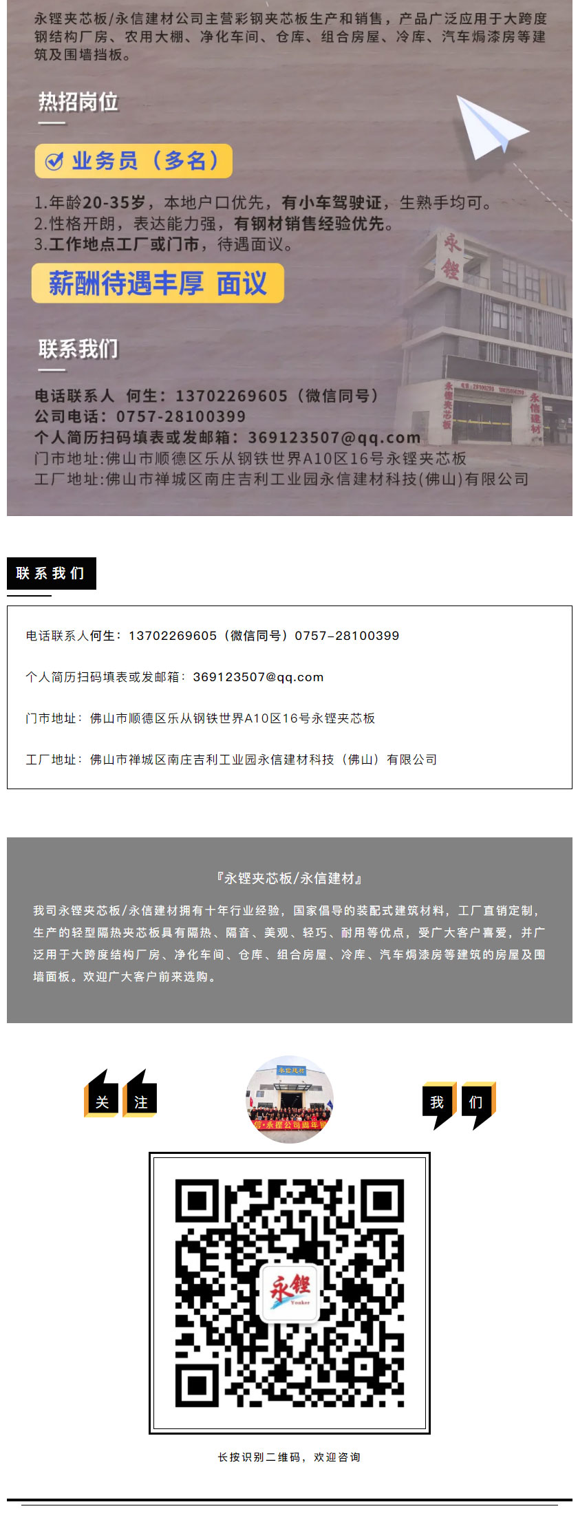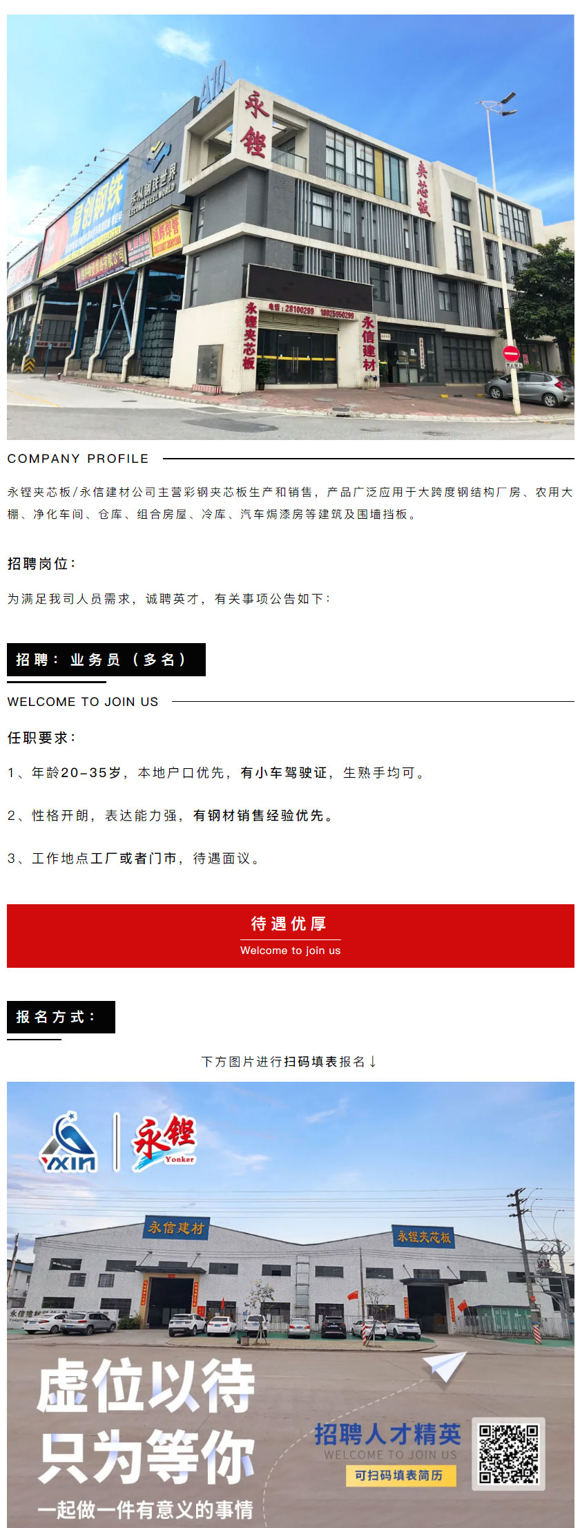 【招贤纳士】| 永铿夹芯板/永信建材