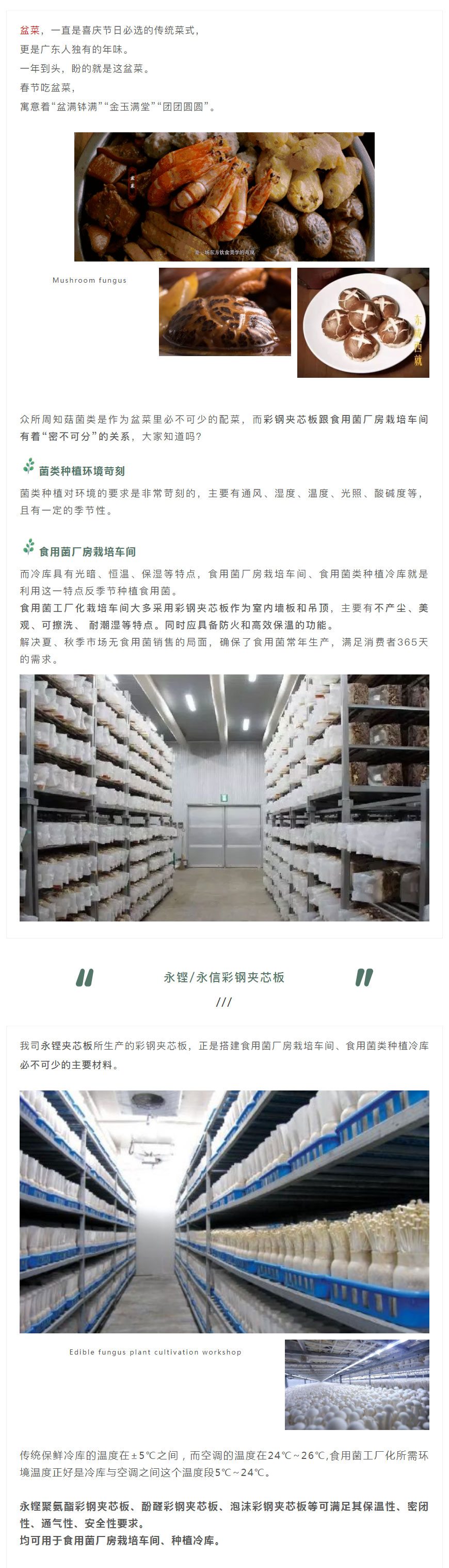 永铿夹芯板 | 食用菌厂房离不开彩钢夹芯板