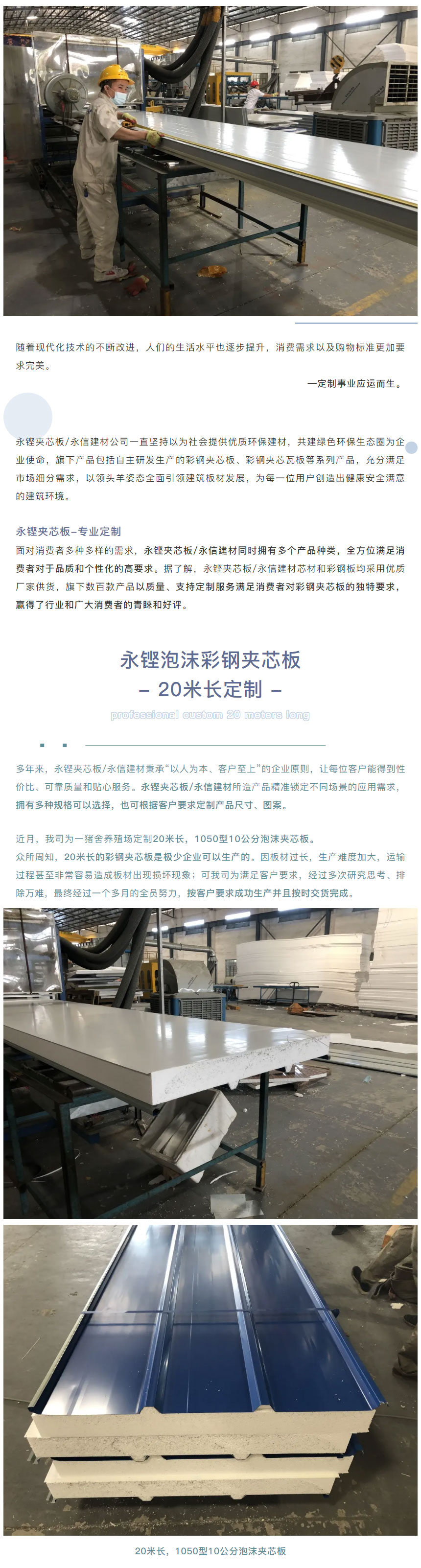 永铿夹芯板 | 专业定制20米长泡沫夹芯板 完满成交